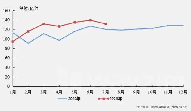 國家郵政局監(jiān)測(cè)數(shù)據(jù)顯示,2023年1月~7月,郵政行業(yè)寄遞業(yè)務(wù)量累計(jì)完成873.7億件,同比增長(zhǎng)12.8%。其中,快遞業(yè)務(wù)量(不包含郵政集團(tuán)包裹業(yè)務(wù))累計(jì)完成703.0億件,同比增長(zhǎng)15.5%。2023年郵政行業(yè)寄遞業(yè)務(wù)量較2022年顯著提升。